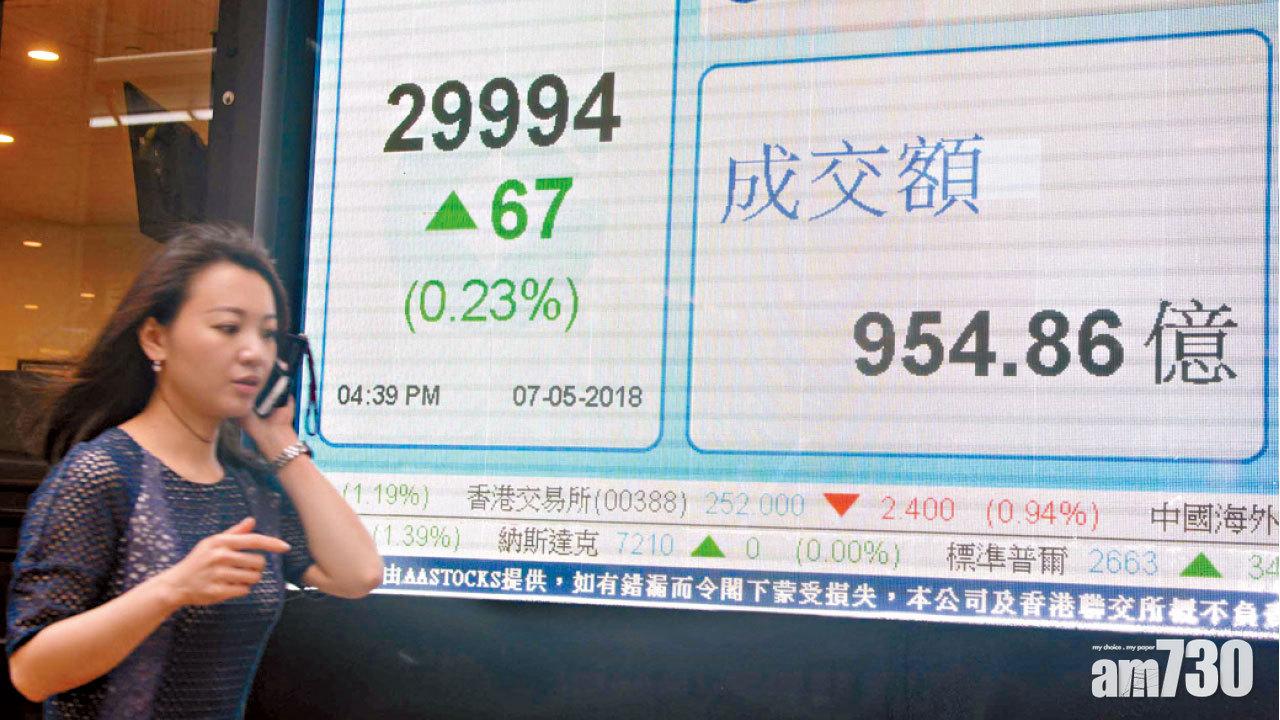至於港股結束連跌3日,市場觀望中美貿易戰進展,恒指昨隨外圍高開175點,早段表現波動,全日高低位30,138點及29,791點均在早前10時前已出現,最後收報29,994點,僅升67點或0.2%,未能收復3萬點大關;國企股指數全日升0.6%,收報11,966點,成交額962億元。