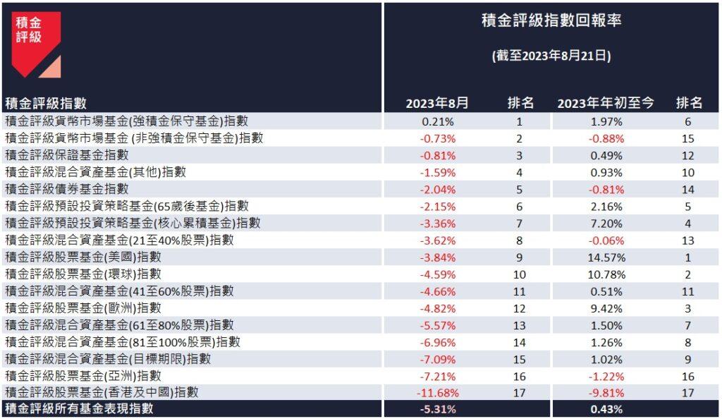 積金評級表示,5.31%的投資虧損可能是強積金自2022年9月以來最大幅度的按月虧損,並將抵消今年首7個月超過 80%的投資收益。