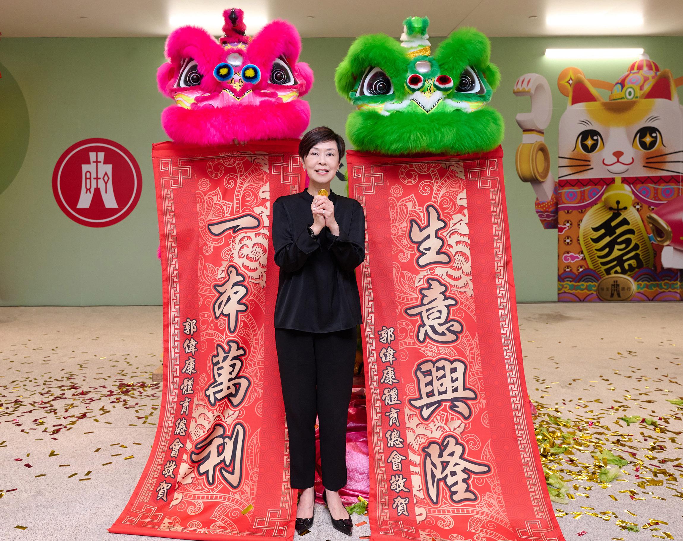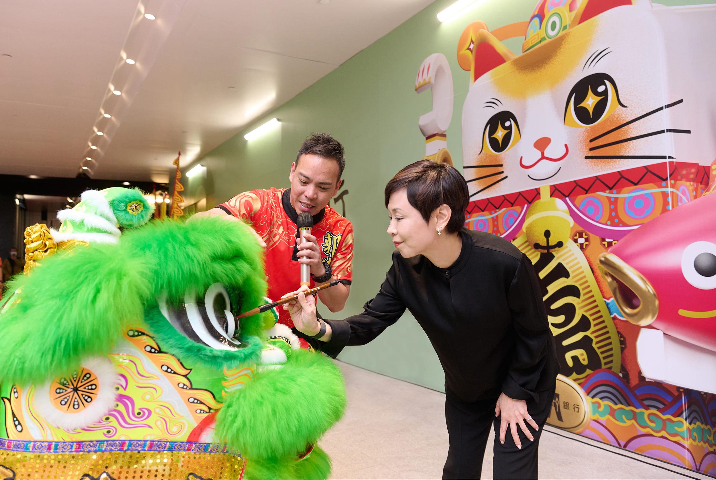 恒生銀行執行董事兼行政總裁施穎茵,周一(19日)聯同該行一眾高層管理人員,向市民及客戶送上祝福,祝願大家在新一年萬事如意、生意興隆。施穎茵更即場為醒獅點睛,寓意各界如龍一樣「恒發生財、龍馬精神」。