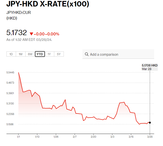 美元兌日圓最新報151.29,每百日圓兌港元5.1732算。