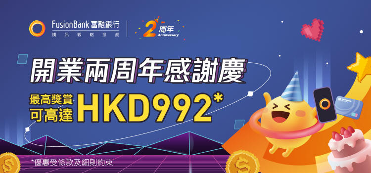 Fusion Bank推出「開業兩周年感謝慶」,全新客戶最高獎賞可高達992元,其中包括即日起至明年1月3日,以邀請碼「711HK」首次成功開立Fusion Bank 戶口的新用戶可獲210元的7-11電子現金券;客戶在推廣期內每成功兌換外幣單筆等值10萬元,可獲80元的現金獎賞等。
