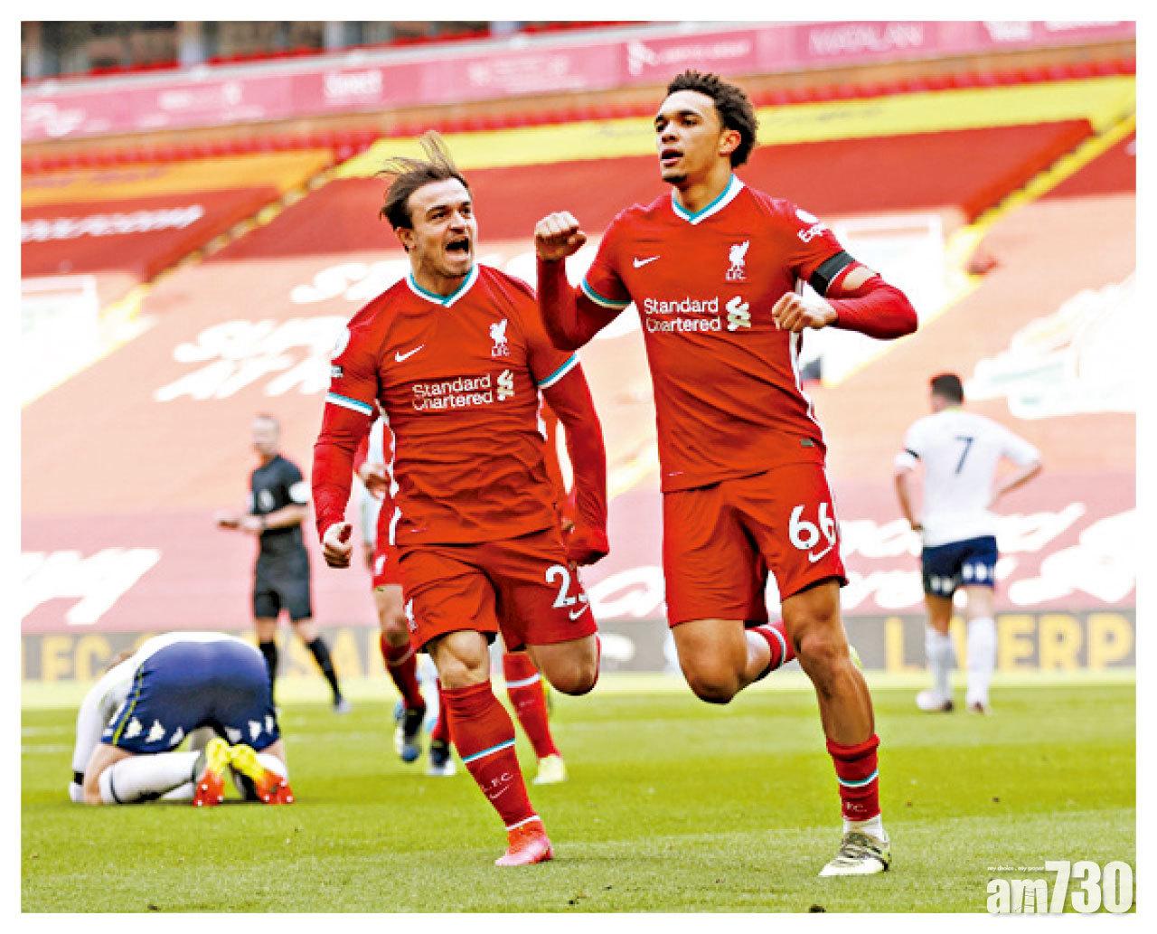 阿歷山大阿諾特(右)上仗英超射入致勝球,一吐烏氣。