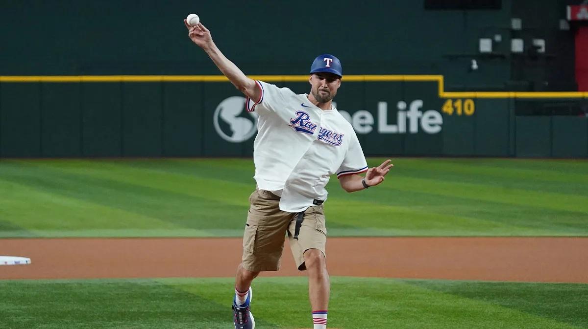 K湯在德州遊騎兵主場迎戰奧克蘭運動家的比賽中擔任開球嘉賓。