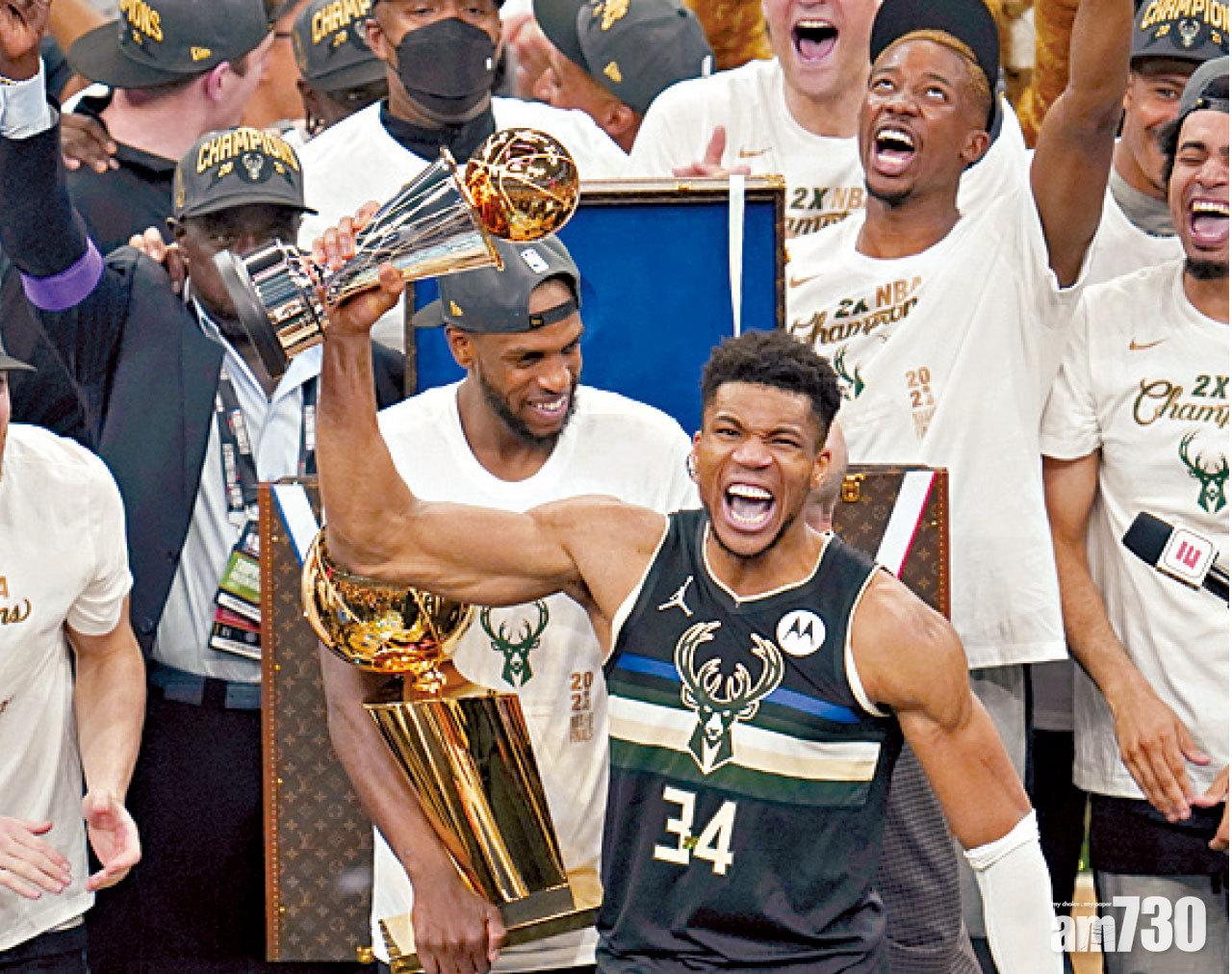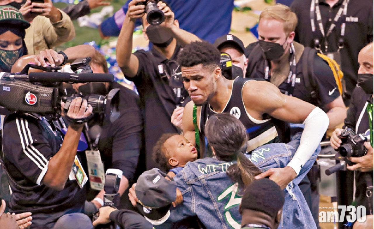 「字母哥」今場交出完美數據50分14籃板5封阻,其中一直被視為其最弱一環的罰球,更造出19射17中,難怪可以領軍擊倒太陽,助公鹿贏得球會史上第2個總冠軍。賽前公布會再做父親的「字母哥」,賽後與家人擁抱後,再跪地喜極而泣。值得一提,他在決賽攻入50分,讓他與1958年名將佩迪特一樣,並列NBA史上總決賽奪標戰得分最多球員。