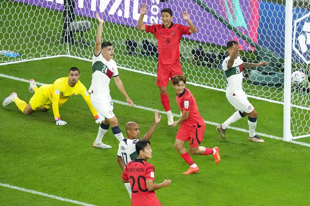 半場積分榜形勢,烏拉圭領先2:0下反壓加納得次名,南韓則會包尾,但其實南韓只需要取得1個入球,就能夠追至與烏拉圭同分,並因得失球相同為0下,憑入球較多(南韓4、烏拉圭2)取得小組次名,可見南韓爭出線比想像中接近。下半場初段以葡萄牙控制較好,但兩軍都未有黃金入球機會;C朗於64分鐘被調離場。南韓66分鐘有黃仁範禁區頂左腳狂抽但角度欠奉被救出。南韓末段狂攻不果奇蹟出現,黃喜燦在補時絕殺,南韓以2:1擊敗葡萄牙,憑得球較多壓過同分的烏拉圭取得小組次名,葡萄牙則以6分取得首名出線。