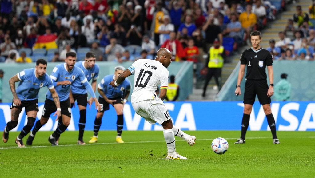 今場勝出即可晉級的加納開賽採取主動,15分鐘更先搏得12碼,但安迪阿休(Andre Ayew)主射被烏拉圭門將洛查特(Sergio Rochet)救出。戰至26分鐘烏拉圭右路傳中看似威脅不大,但兩名加納守衛漏踢。蘇亞雷斯(Luis Suarez)推過一人後勁射,加納門將阿迪薛基(Lawrence Ati-Zigi)卻把角度一般的射門擋出不遠,被衝前的迪阿拉斯卡達(Giorgian de Arrascaeta)補中,烏拉圭開紀錄。