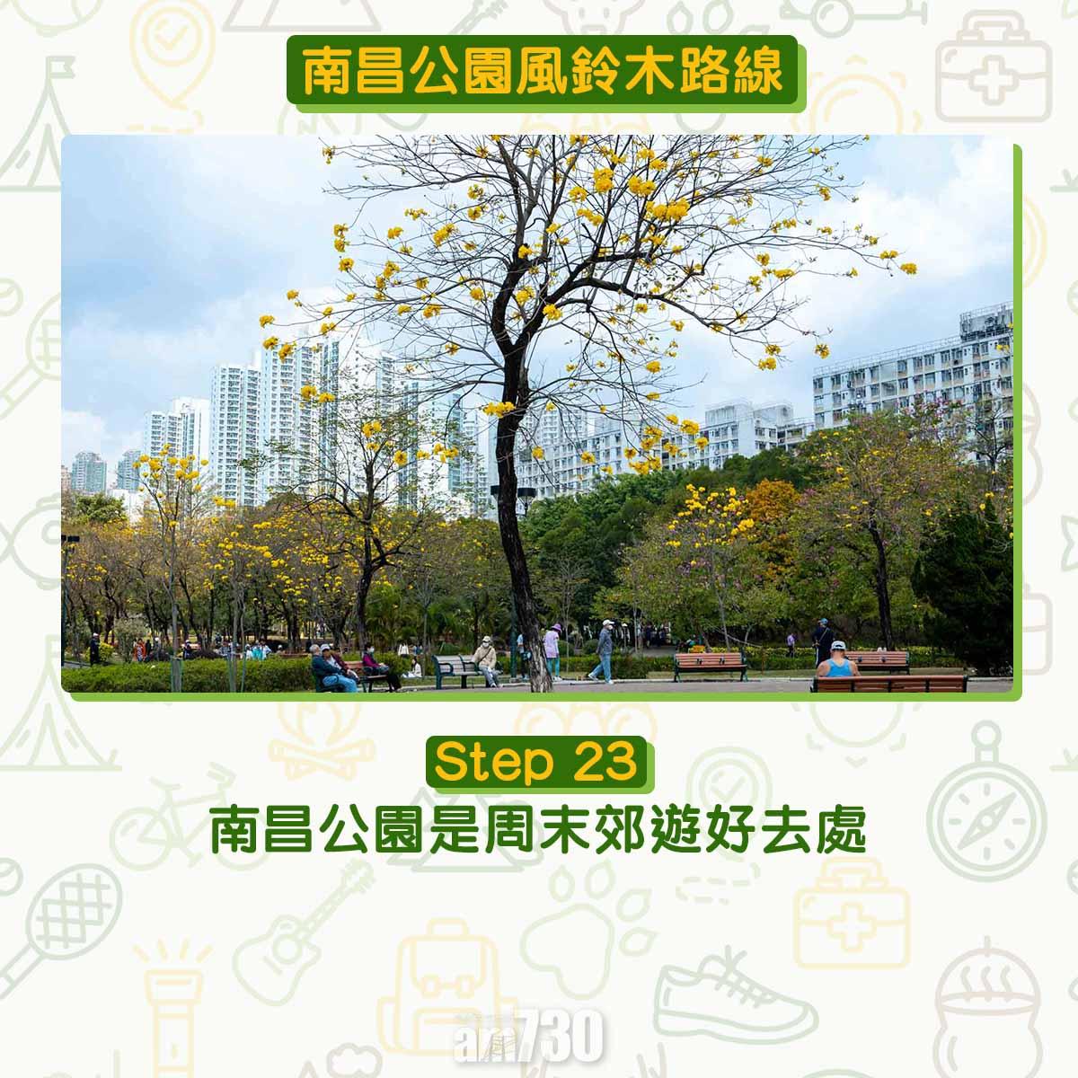 每年3-4月是風鈴木黃花盛開時期,南昌公園都會開滿一片黃色花海。詳細按此