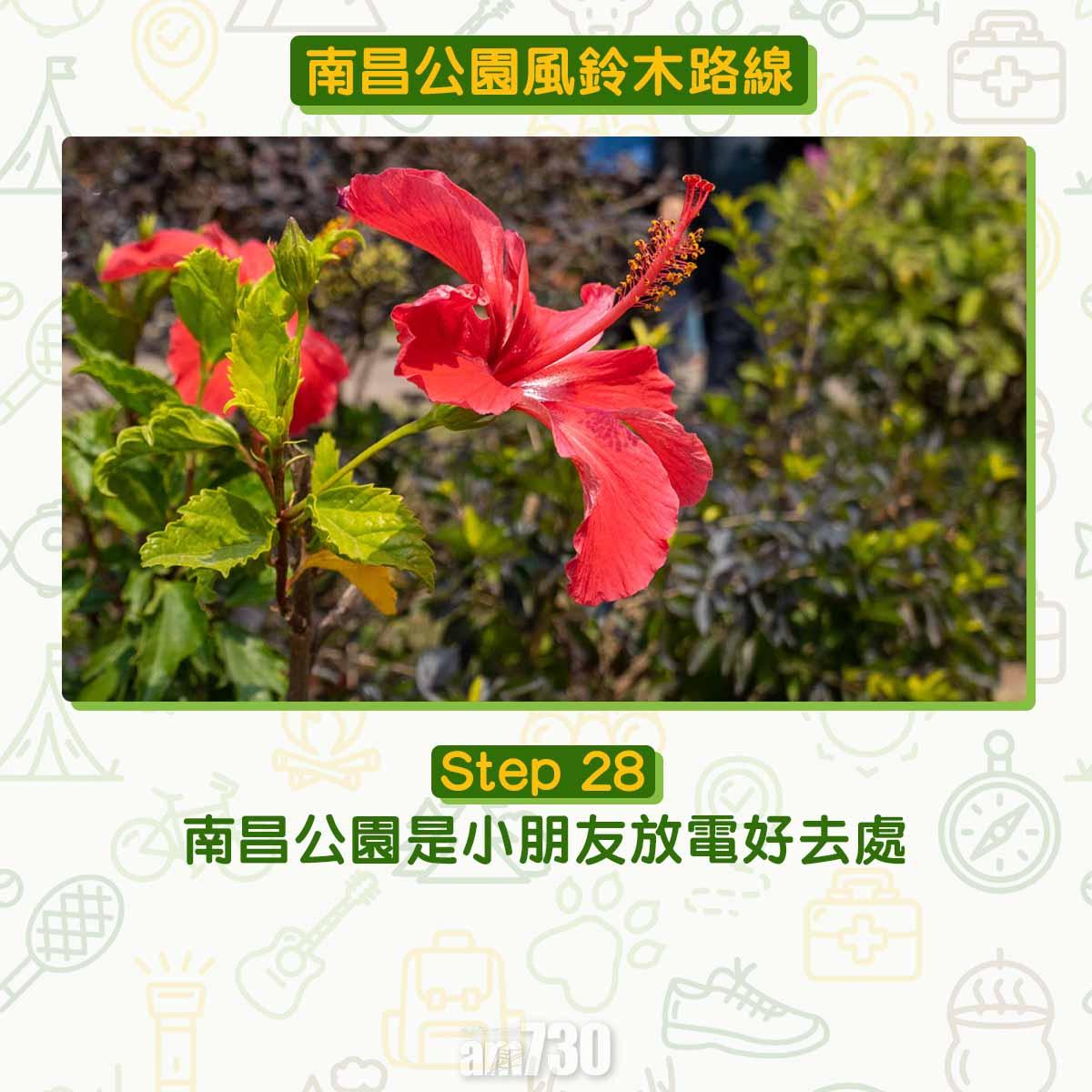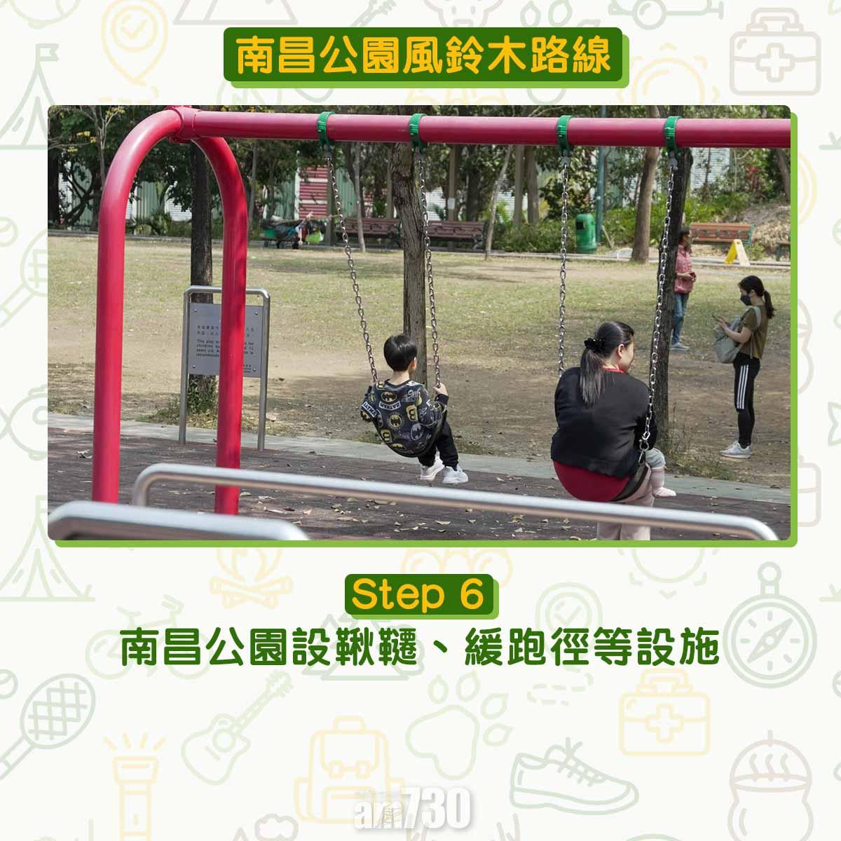 南昌公園24小時開放,2萬呎草原有指是全香港最大面積草坪的公園。南昌公園草地分佈為多個範圍,當中更有些可邊野餐邊欣賞黃花風鈴木。南昌公園其他設施包括兒童遊樂場、兒童三輪車遊樂區、健身設施、足健徑、緩跑徑、鞦韆、洗手間等,適合拍拖、閒遊整舍南昌公園約半至一小時,野餐、跑步、親子樂放電、拍拖也理想。