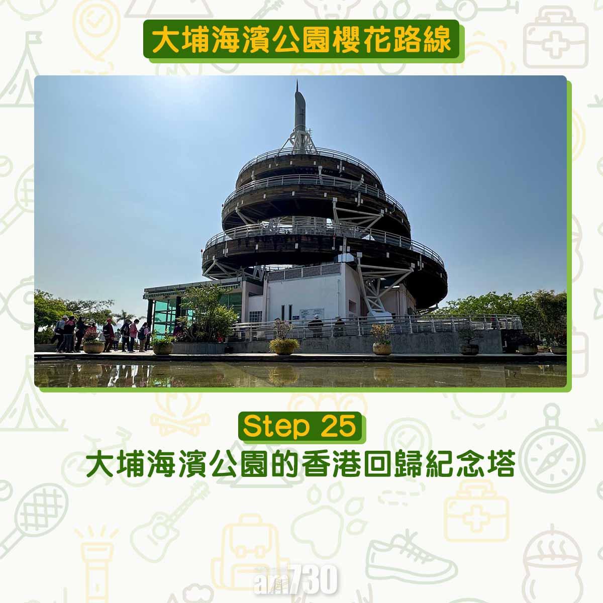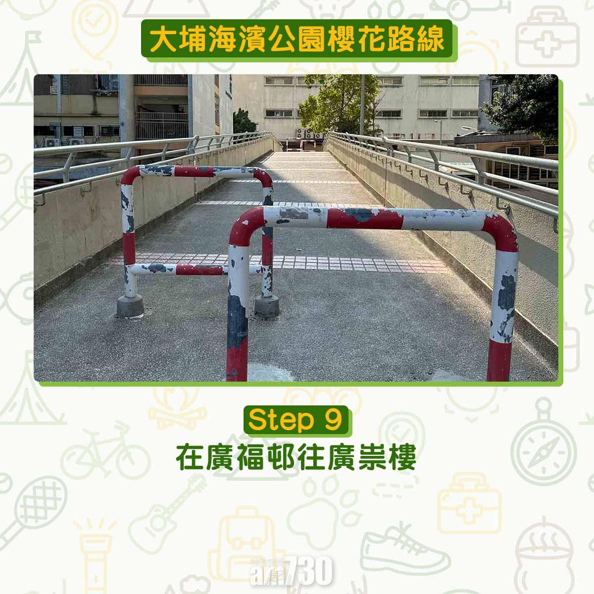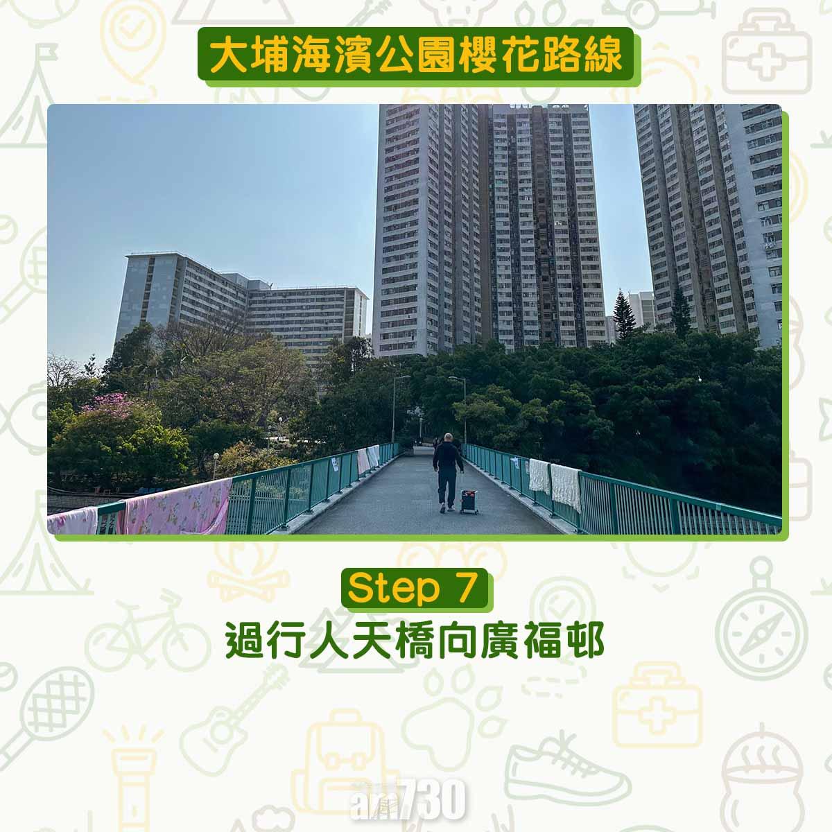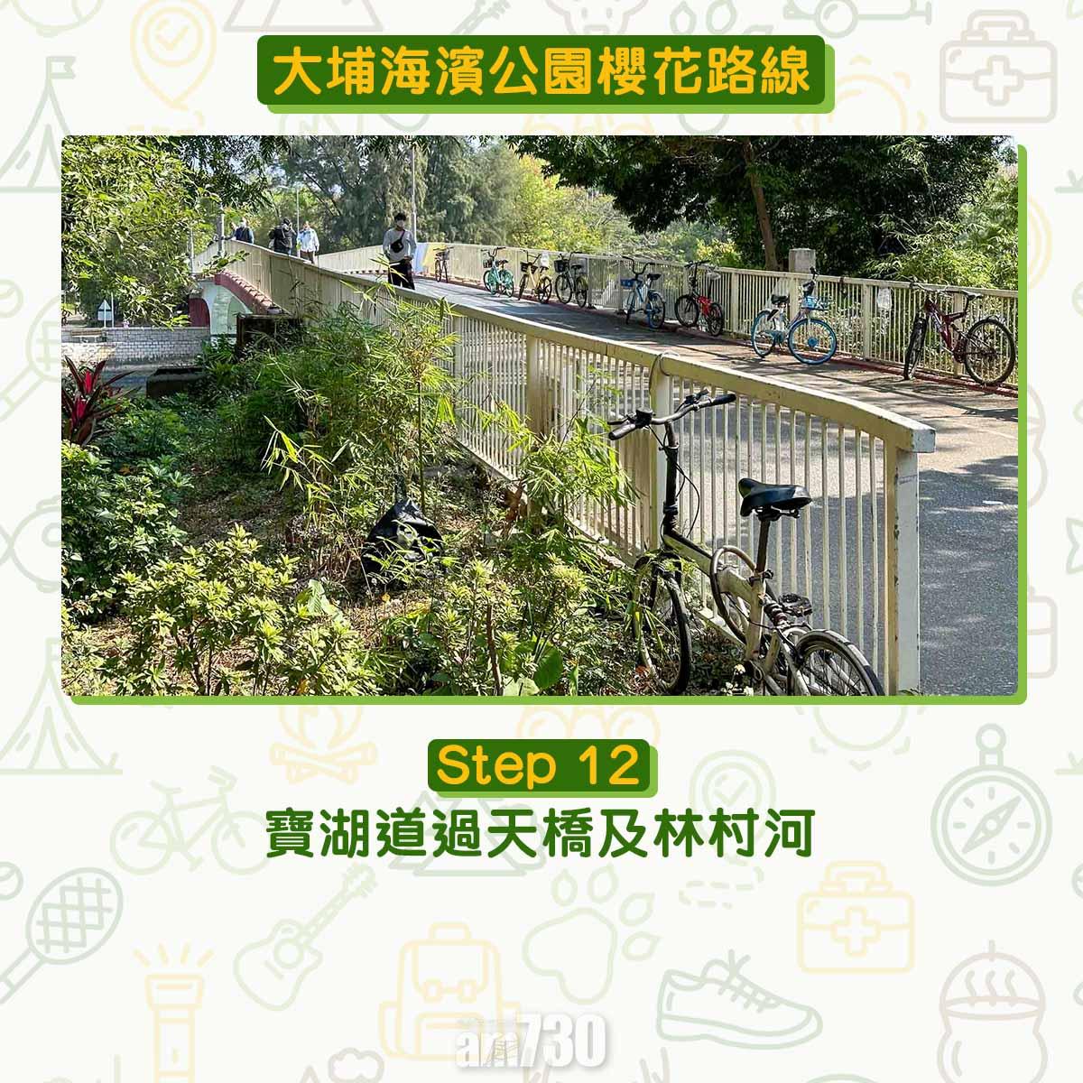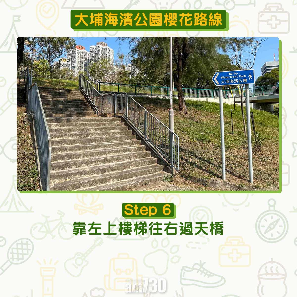 風箏放飛區與橋底公廁間︰即大埔海濱公園地圖的(5)與(7)間,當眼處種植了數棵富士櫻,高度非常適合打卡拍照。
