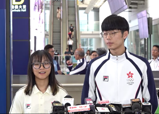 香港隊單車代表李思穎及跆拳道代表盧蔚豐在巴黎奧運結束後返港。