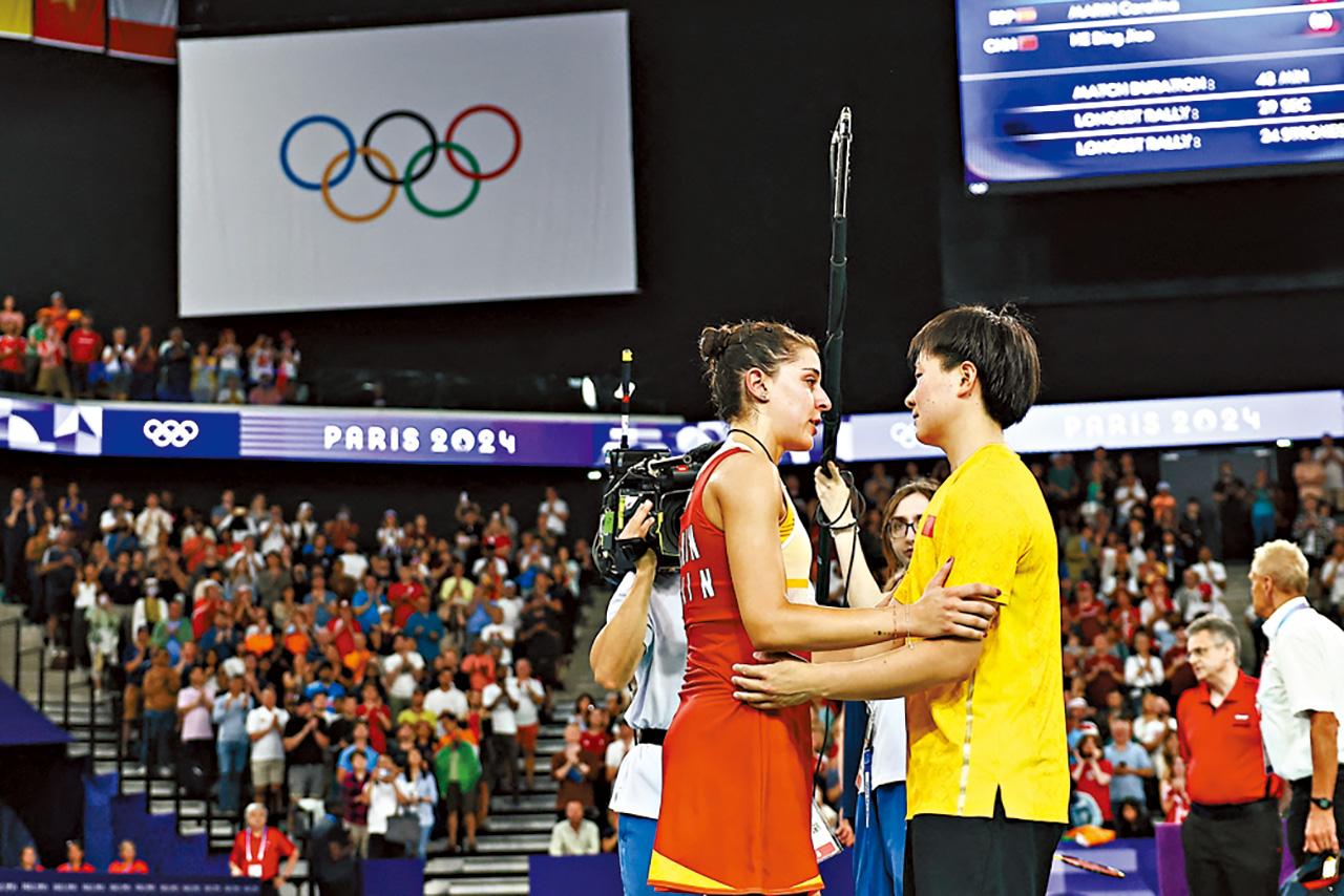 何冰嬌(右)晉級後慰問傷出的馬蓮。