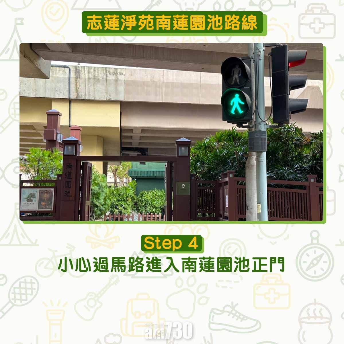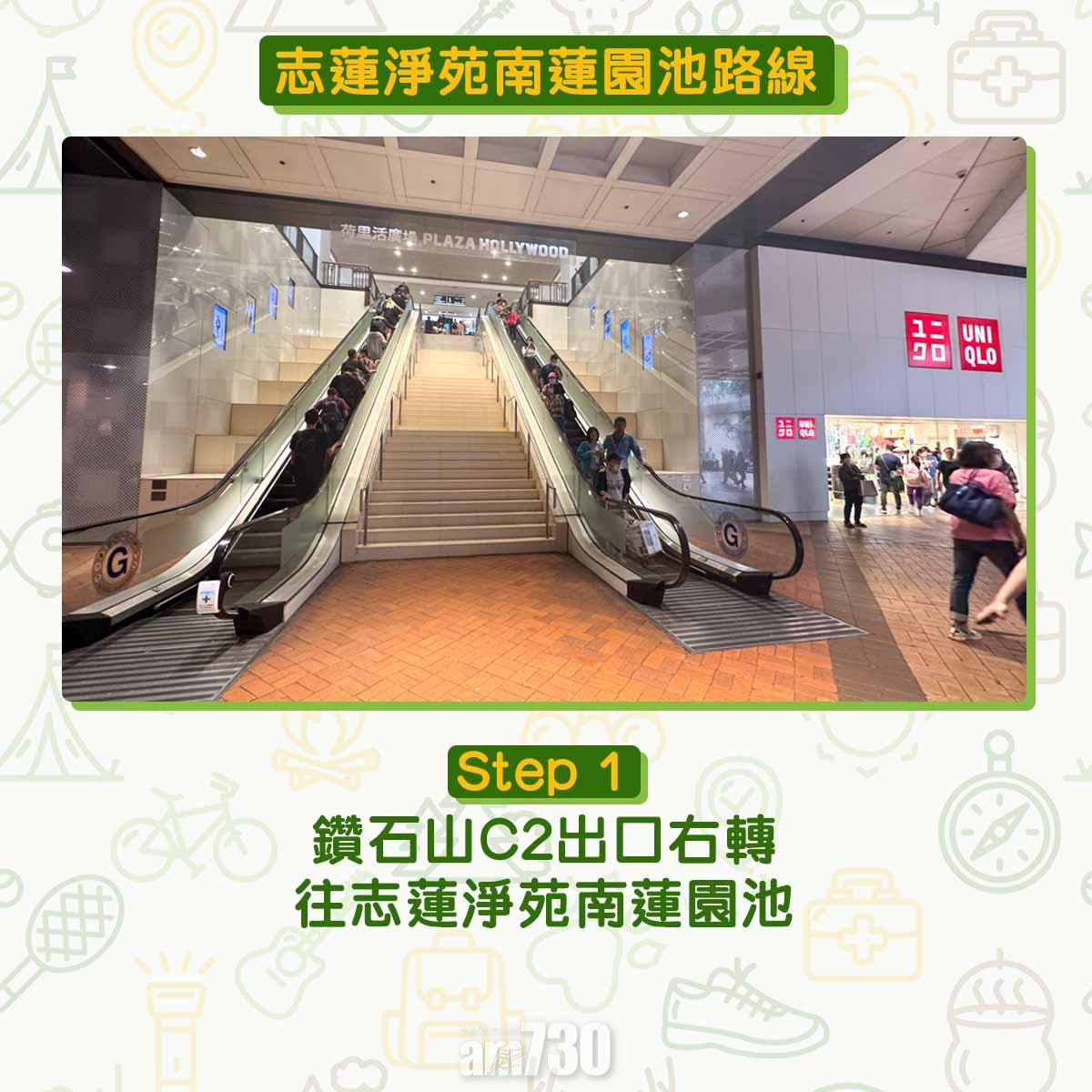 鑽石山站C2出口上兩條扶手電梯,至荷里活廣場前右轉上斜。右轉過紅綠燈,抵達免費入場的南蓮園池。