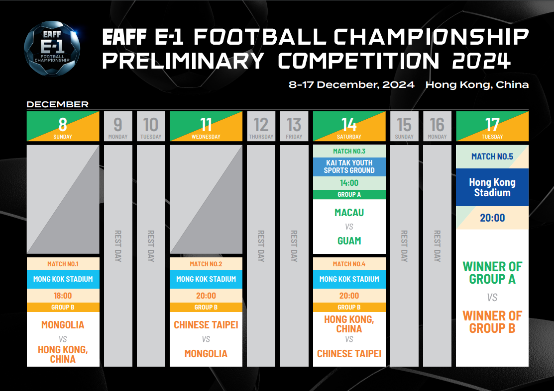 東亞錦標賽外圍賽更新賽程。(香港足總圖片)