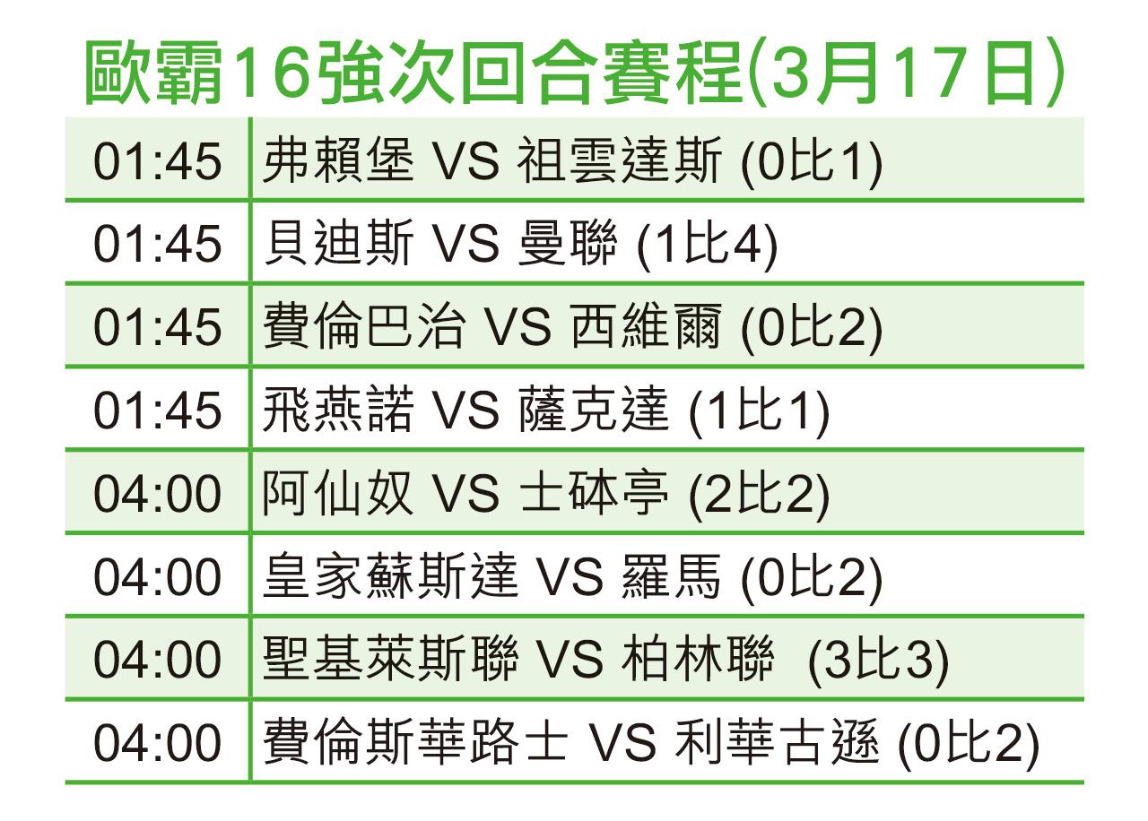 英超仍佔優的阿仙奴不忘追逐歐洲錦標,香港時間今晚深夜返酋長球場,在歐霸16強次回合迎戰葡超勁旅士砵亭,恃態勇鋒強,加上對手有兩員中後場主力停賽,必全力開火,爭取贏波過關,保住本屆雙料冠軍希望。