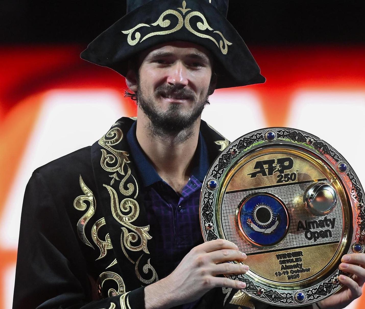 29歲的梅韋迪夫在近年的表現下滑,對上一次的冠軍已是在2023年的羅馬大師賽。之後未曾贏過巡迴賽的錦標,世界排名也跌出了前10。這次在哈薩克參與這個中亞地區賽事,決賽面對法國的穆特,首盤先贏7:5。第2盤穋特卻以局數6:4追平盤數,雙方進入決勝第3盤,梅韋迪夫再贏局數6:3,以盤數2:1,在相隔882日後再次贏得冠軍,也是他個人第21個賽事冠軍。