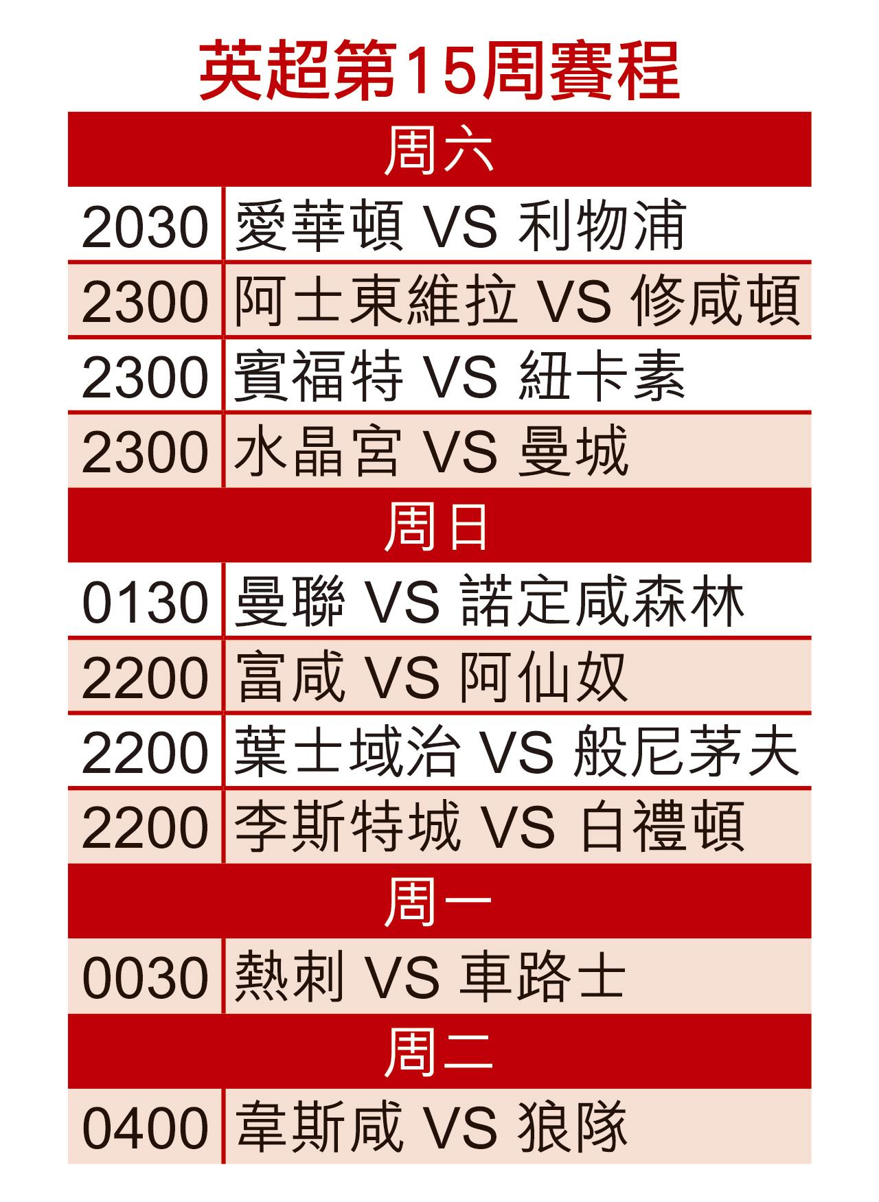 英超馬不停蹄,明晚頭場上演默西塞德郡打吡,由「拖肥」愛華頓迎戰「一哥」利物浦。愛華頓上仗主場大捷,但對手是全英超防守最差的狼隊;相反紅軍同晚則完場前被對手逼和,榜首優勢縮減,但前線精兵多利快車期調動,加上射手穆罕默德沙拿(Mohamed Salah)大勇特勇,今場有力贏波反彈,客勝必取。(球賽編號FB4962,12月7日20:30開賽)
